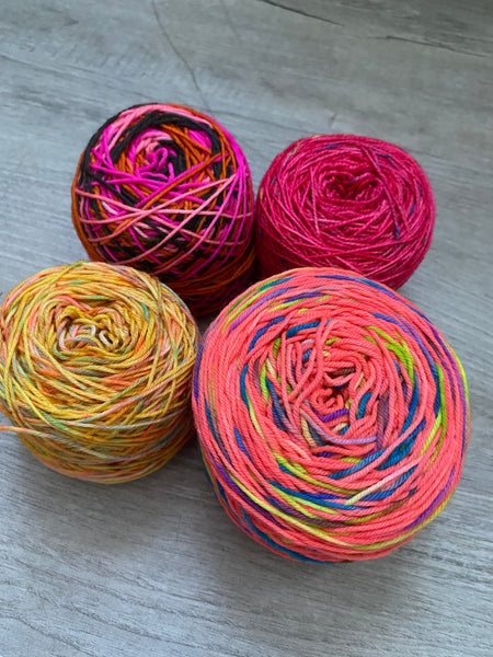 Neon Warm Colors Fingering 75% Merino 25% Nylon approx 225 g