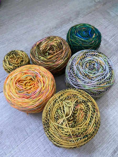Yellows and Greens Fingering 75% Merino 25% Nylon approx 371 g
