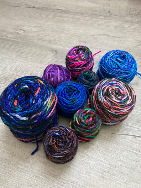 choose between various color sets in DK or Fingering. Yarn has been weighed but weights are still approximate.